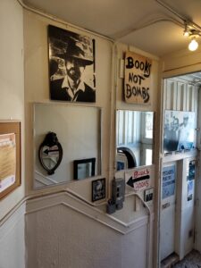 L’inscription « Printers ink is the greater explosive » (« L’encre d’imprimerie est le plus grand explosif »), écrite de la main de Ferlinghetti, domine cet espace. Cette maxime, manifeste poétique et politique à la fois, résume l’esprit de City Lights : la conviction que les mots peuvent changer le monde, que la poésie est une arme de résistance massive contre l’indifférence et la bêtise.